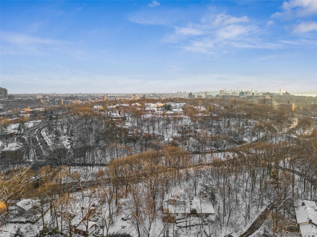 A Sanctuary Above the City - RiverdalePerched atop a serene, south-facing half-acre in the coveted North Riverdale section of the Bronx, this extraordinary one-level residence offers a rare blend of architectural harmony and natural beauty-reminiscent of a Frank Lloyd Wright-inspired retreat. Surrounded by mature trees and endless wooded vistas, the home feels worlds away, yet is just 22 minutes from Midtown Manhattan.Designed to bring the outdoors in, the home is flooded with natural light throughout the day and across all seasons. Floor-to-ceiling south-facing windows, skylights, and an open east-west layout create a seamless flow between the interior living spaces and the surrounding landscape. A sprawling living room features a gas-fired fireplace for cozy winter evenings, custom built-in bookcases, and a tranquil reading nook overlooking the greenery beyond.The expansive chef's kitchen is ideal for both entertaining and everyday living, offering generous counter space, a breakfast bar, and a large dining area. Sliding glass doors lead to an outdoor deck-perfect for alfresco dining, barbecuing, and relaxing to the soothing sounds of a waterfall feature that enhances the home's Zen-like atmosphere.The private bedroom wing on the west side of the home includes a spacious primary suite with an oversized, spa-like bathroom and walk-in closet. Two additional bedrooms share a large, well-appointed bathroom. A separate guest bedroom on the east side of the home enjoys exceptional privacy and is adjacent to a beautifully renovated full bathroom that also serves as a powder room.Additional features include a finished basement ideal for a gym, playroom, or home office, a two-car garage, and two driveways-offering both convenience and ample storage. The result is a peaceful, retreat-like setting that truly feels like Shangri-La.All of this is just minutes from Horace Mann, Fieldston, Riverdale Country School, SAR Academy, PS 81, Manhattan College, and Mount Saint Vincent, with nearby shops, excellent transportation, and easy access to everything Manhattan has to offer.