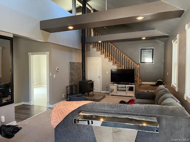 Approximately 1,200 sq ft apartment featuring 1 bedroom, 1 full bathroom, and a loft area suitable for office or studio use. Vaulted ceilings provide an open feel throughout the living space. Kitchen includes ample cabinet and counter space. Bathroom offers a large vanity, tub, and additional storage.Bedroom has beautiful French doors leading to a balcony overlooking the backyard area. Unit includes washer/dryer hookups in the basement and off-street parking. No pets permitted.Convenient location approximately 0.25 miles from the Taconic Parkway with easy access to I-84. Close to local amenities, services, and transportation routes within the Hudson Valley region. Utilities not included. No smoking. No pets.